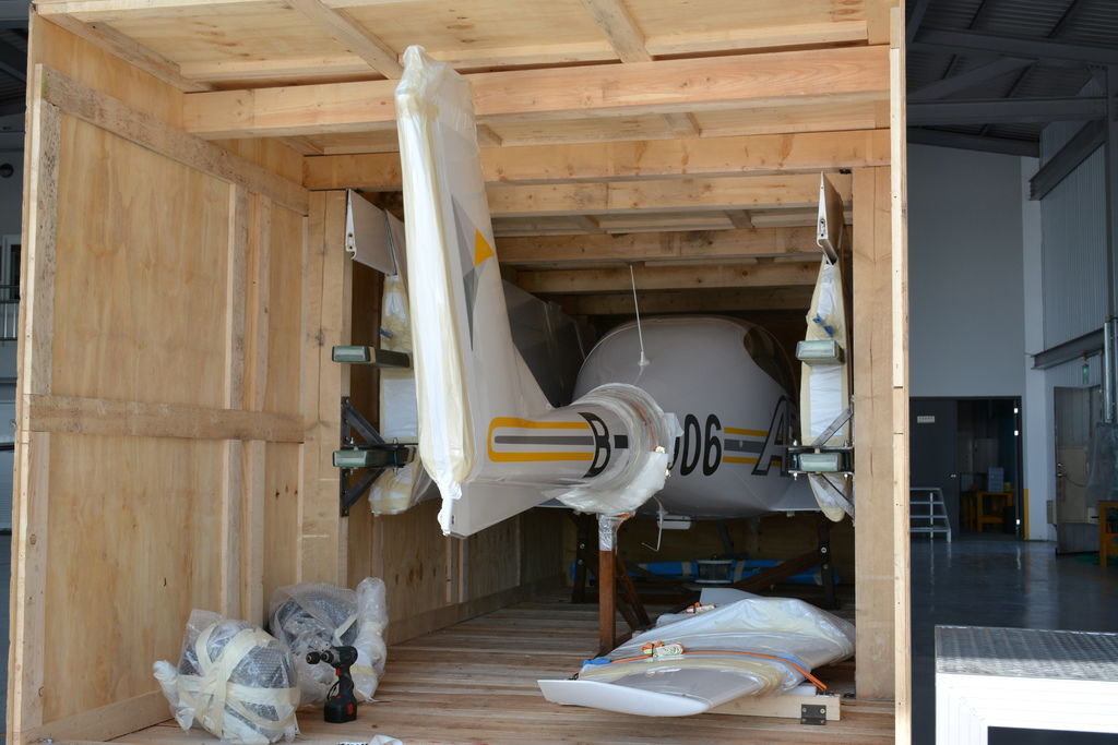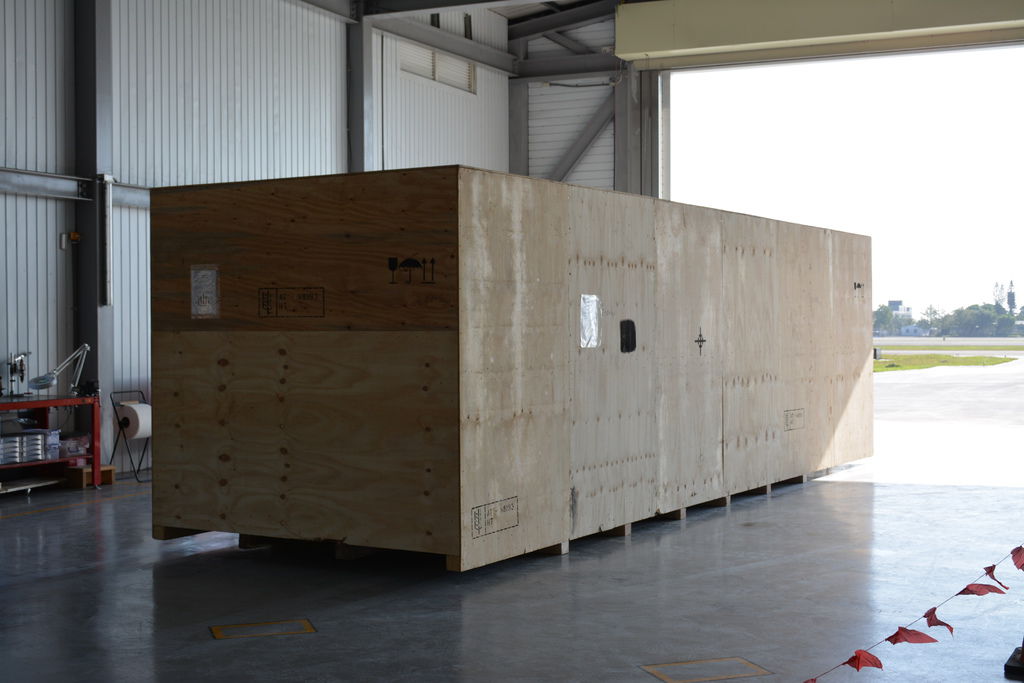 ▲各位覺得意外嗎?教練機竟是使用貨櫃方式【空運】而來的(你沒看錯...真的是空運)